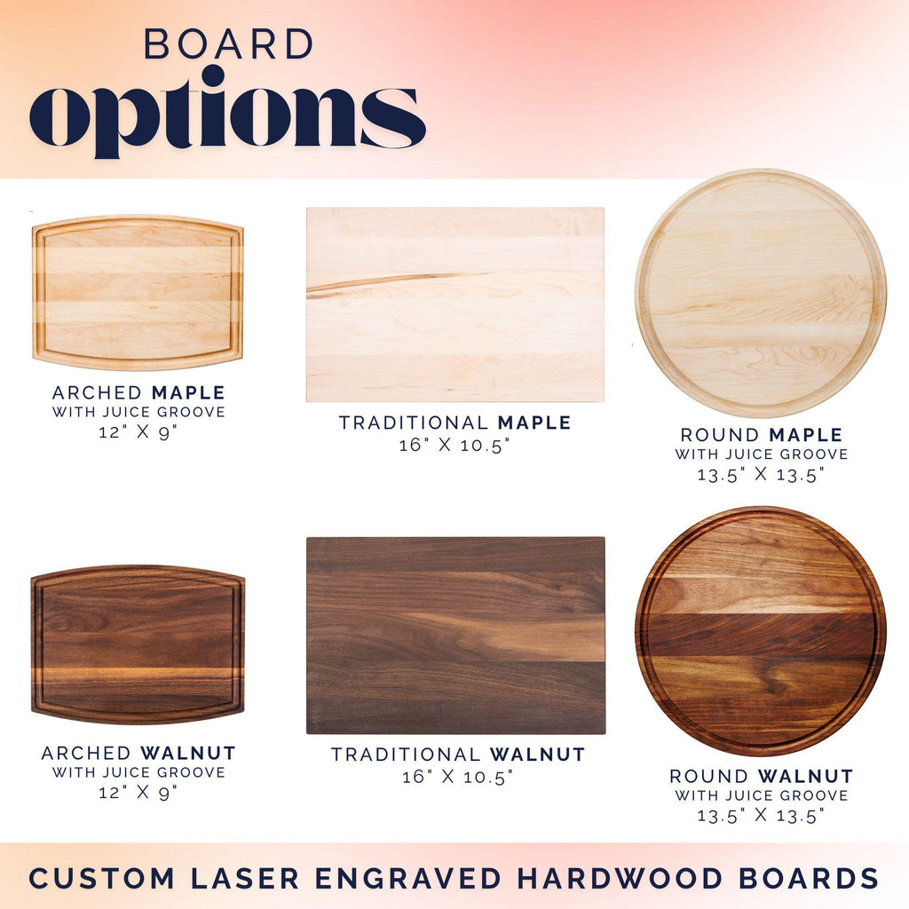 Personalized Cutting Board Wedding Gift, Maple, Walnut or Cherry Cutting Board, Engagement Gift, Engraved Custom Charcuterie Board