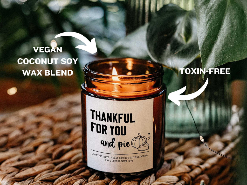 Thanksgiving Hostess Gift, Thankful For You and Pie Scented Soy Candle, Holidays Gift Ideas, Thanksgiving Decor, Christmas Gifts for Family