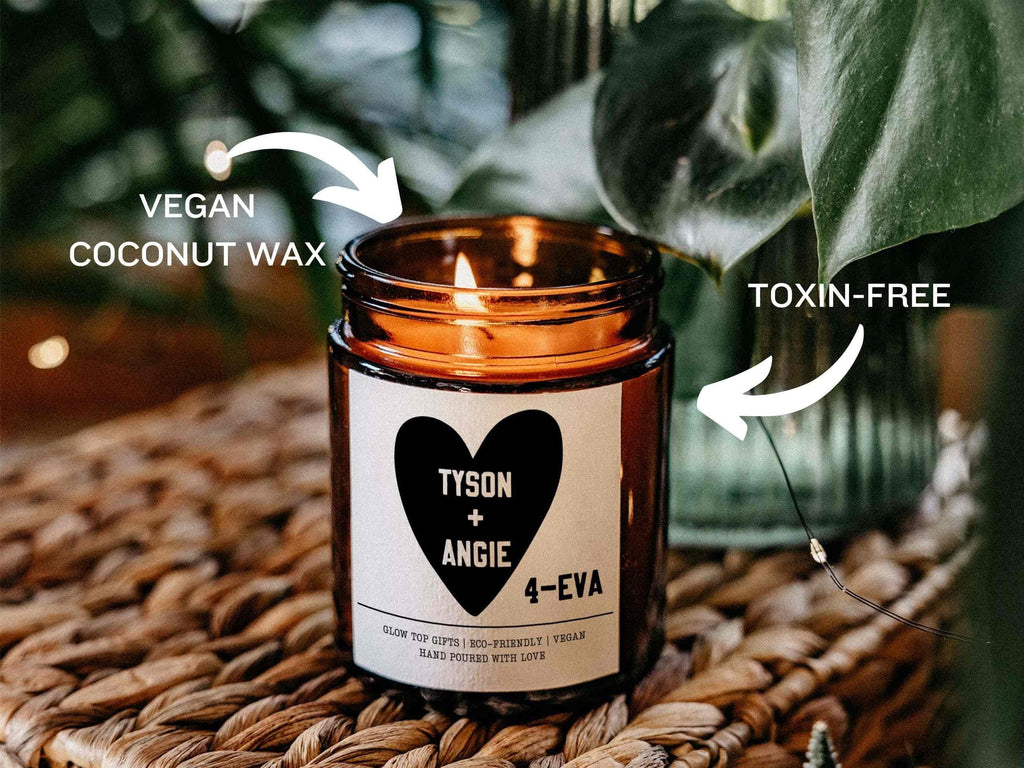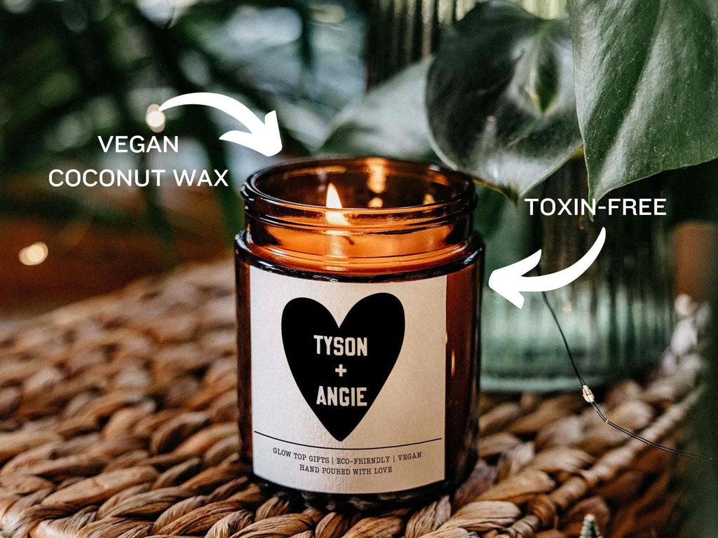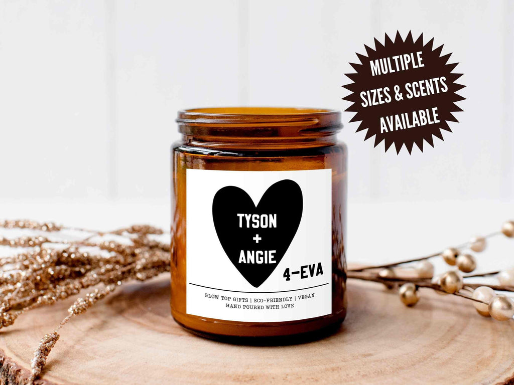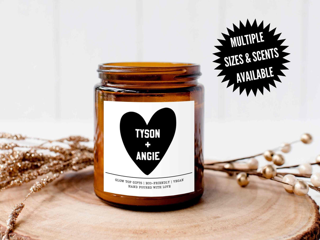Cute Personalized Couple Candle with Heart, Engagement Gift Candle, Scented Jar Candle, Couples' Gift, Valentine's Day Gift, Heart Candle