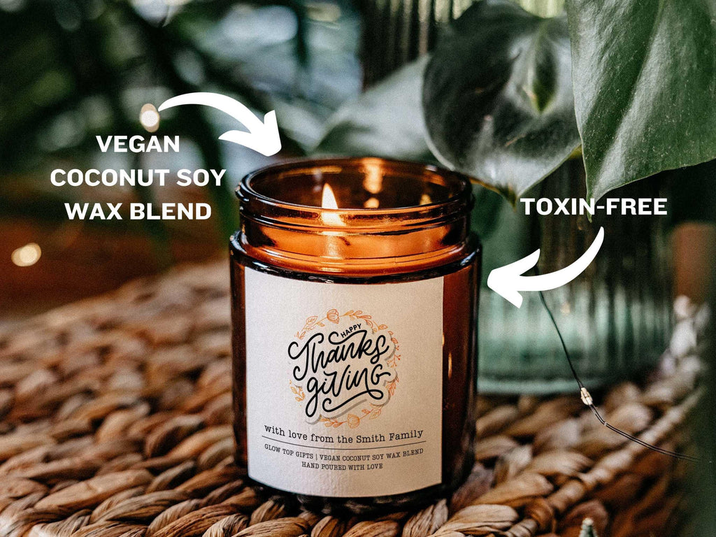 Custom Thanksgiving Candle, Personalized Thanksgiving Gift, Hostess Gift, Thanksgiving Gift from Family, Favor for Thanksgiving, Custom Gift