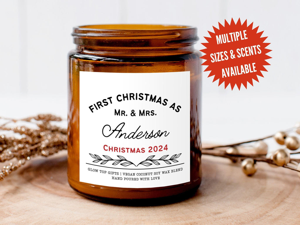 First Married Christmas Candle, Christmas Gift for Couple, Christmas Scented Candle, Newlywed Christmas Gift, First Christmas Married,