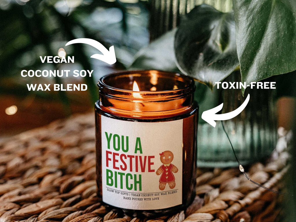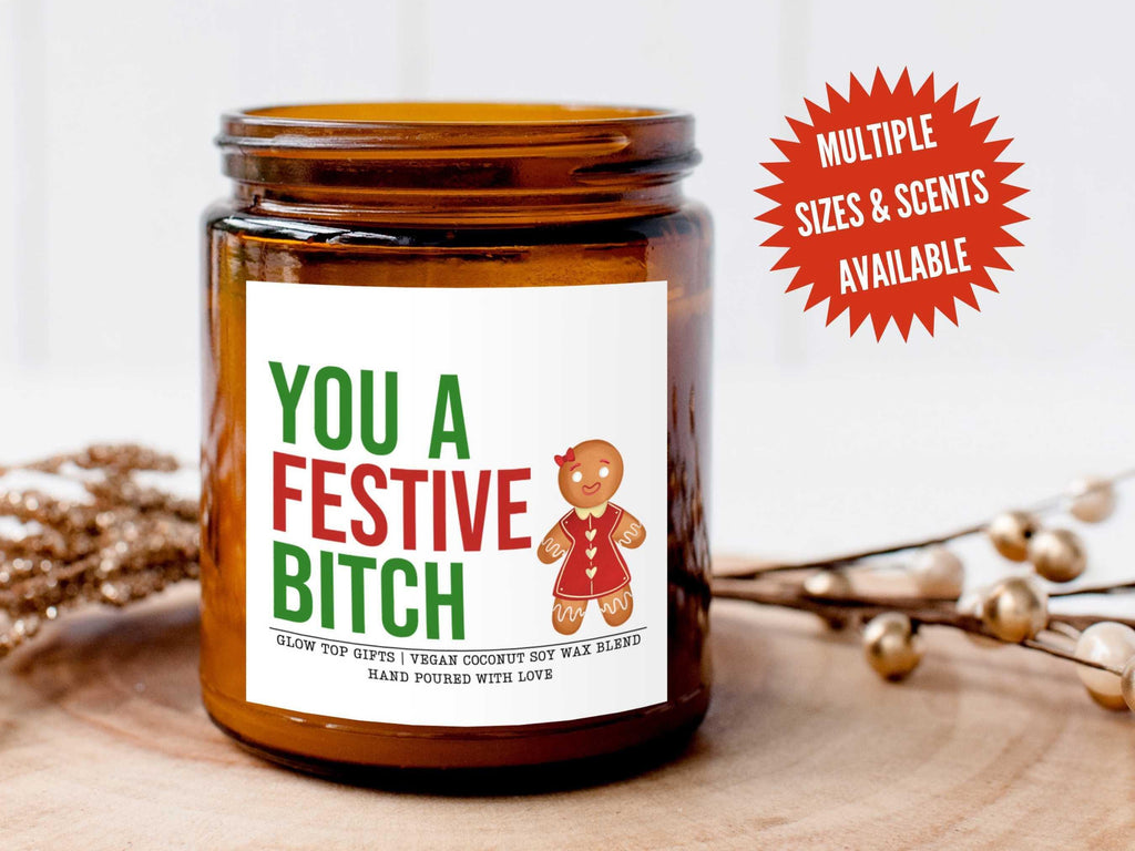 Fun Christmas Candle Gift for Her, You a Festive Bitch Candle, Funny Christmas Gift, Christmas Candle, Christmas Party Favor, Gift for BFF