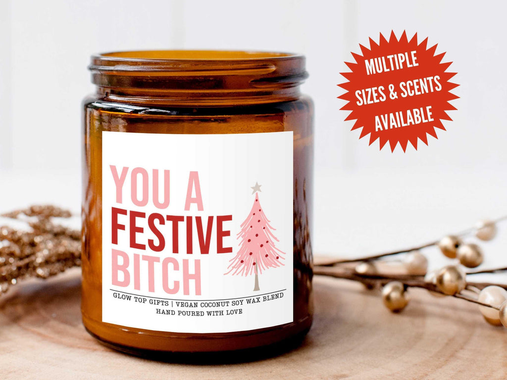 Funny Christmas Candle Gift for Her, You a Festive Bitch Candle, Funny Christmas Gift, Christmas Candle, Christmas Party Favor, Gift for BFF