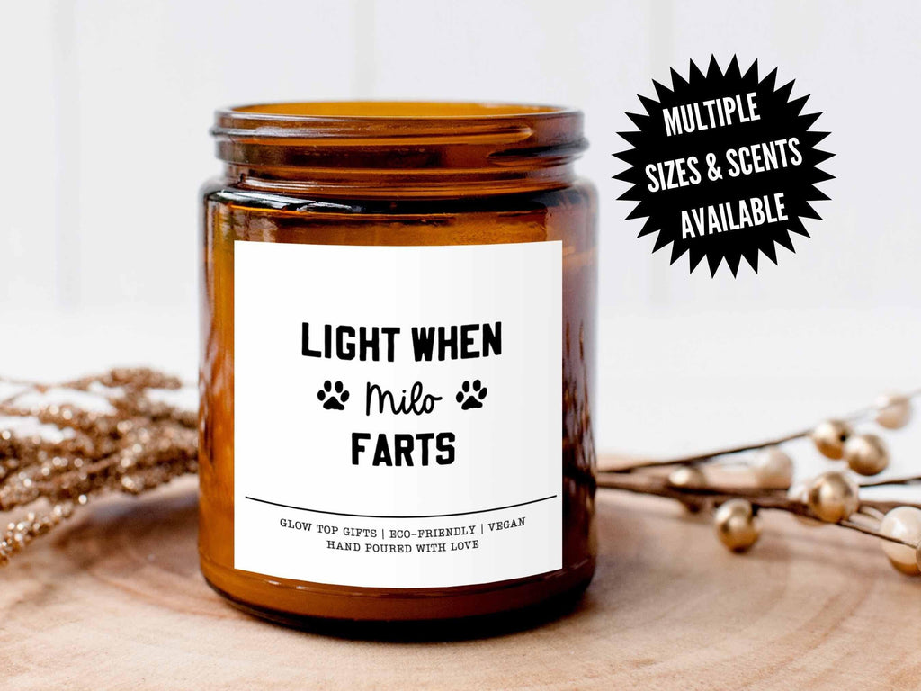 Light When Dog Farts Candle, Personalized Dog Mom Gift, Dog Lover Birthday Gift, Gift for Dog Owner, Funny Candles, Scented Soy Candle